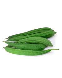Ridge gourd, also known as Tori, Turai, or Jhinga, is a green, elongated vegetable with distinct ridges (lines) running along its length. It has a rough, dark green outer skin and a soft, white inner flesh. The vegetable is tender and mildly sweet when young and becomes fibrous as it matures.